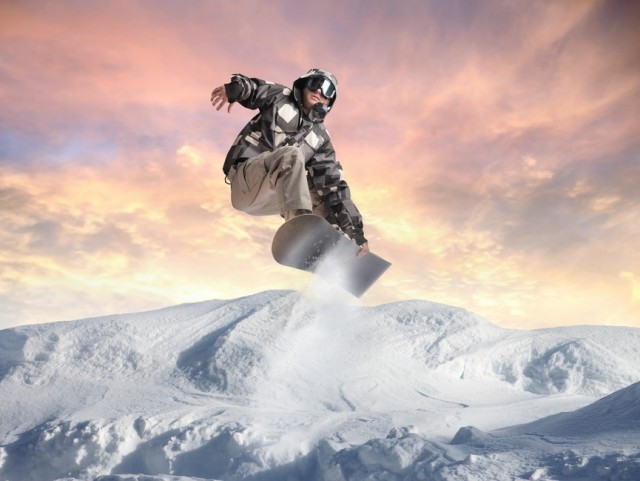 A classic winter sport; snowboarding.