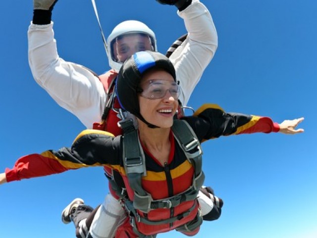 When you go on a Tandem skydive, you're securely harnessed to a professional sky diver. You experience everything from the freefall to the landing and even get to participate, if you like, in some of the maneuvering! Fully briefed and fully equipped, jumpers are there to help you and others take that first step on this extreme sport.