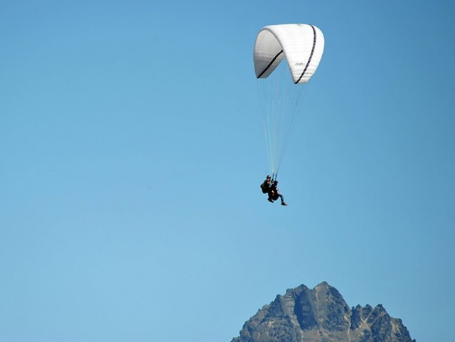 • The tandem jumper is harnessed to a professional Instructor.